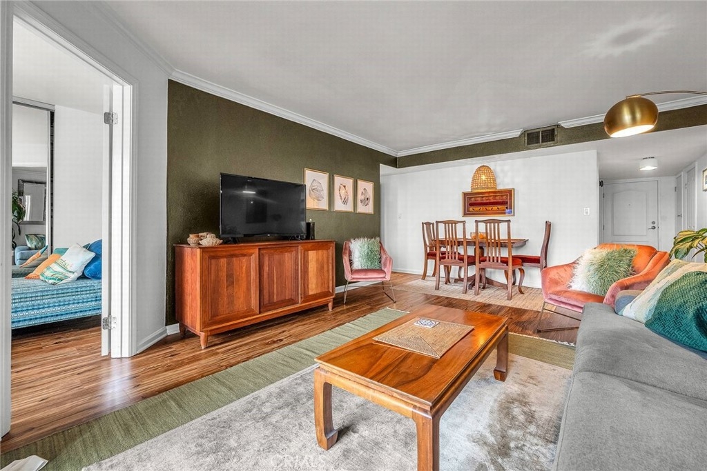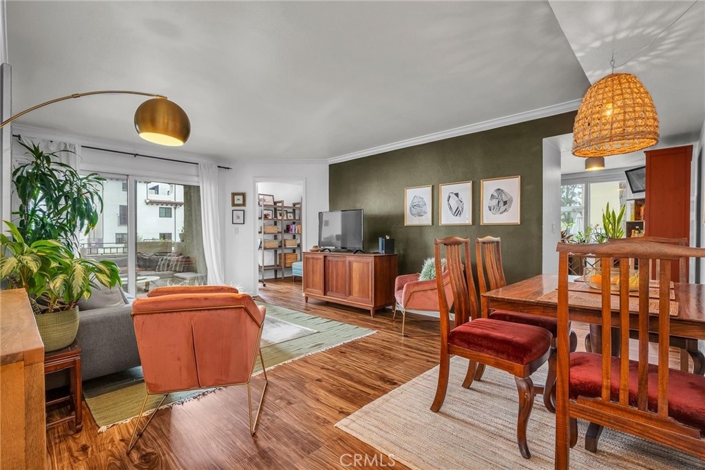 Discover this stunning 3-bedroom, 2-bathroom condo offering 1,225 sqft of stylish living space in the heart of Sherman Oaks! Step inside to a spacious and inviting living room that seamlessly connects to the dining area, creating the perfect space for both relaxation and entertaining. A sliding door extends your living space to a private patio, ideal for morning cup of coffee or an evening glass of wine. The adjacent cook’s kitchen is beautifully designed with white cabinetry, granite countertops, and stainless-steel appliances (refrigerator, stove, microwave, and dishwasher are all included). The expansive primary suite offers a walk-in closet plus an additional large closet, and a luxurious ensuite bathroom featuring a double vanity with granite countertop, separate tub and walk-in shower. The second bedroom is generously sized with a large closet and easy access to the well-appointed hall bathroom, complete with a large vanity with granite countertop and tub/shower combo. The third bedroom is perfect for guests, a home office, or a creative space. Convenience is key with an in-unit laundry area and the washer and dryer are included as well. Additional highlights of this unit include central A/C, copper plumbing, quiet dual-pane windows, newer vinyl flooring, smooth ceilings, and crown molding. Plus, enjoy the added convenience of two secure parking spaces. This well-maintained community offers resort-style amenities, including a sparkling pool, outdoor BBQ and picnic area, and a recreation room. Located just minutes from Ventura Boulevard, the Sherman Oaks Galleria, trendy restaurants, boutique shopping, entertainment, and major freeways, this condo offers the perfect blend of comfort, convenience, and luxury. Don’t miss this incredible opportunity—schedule your showing today!