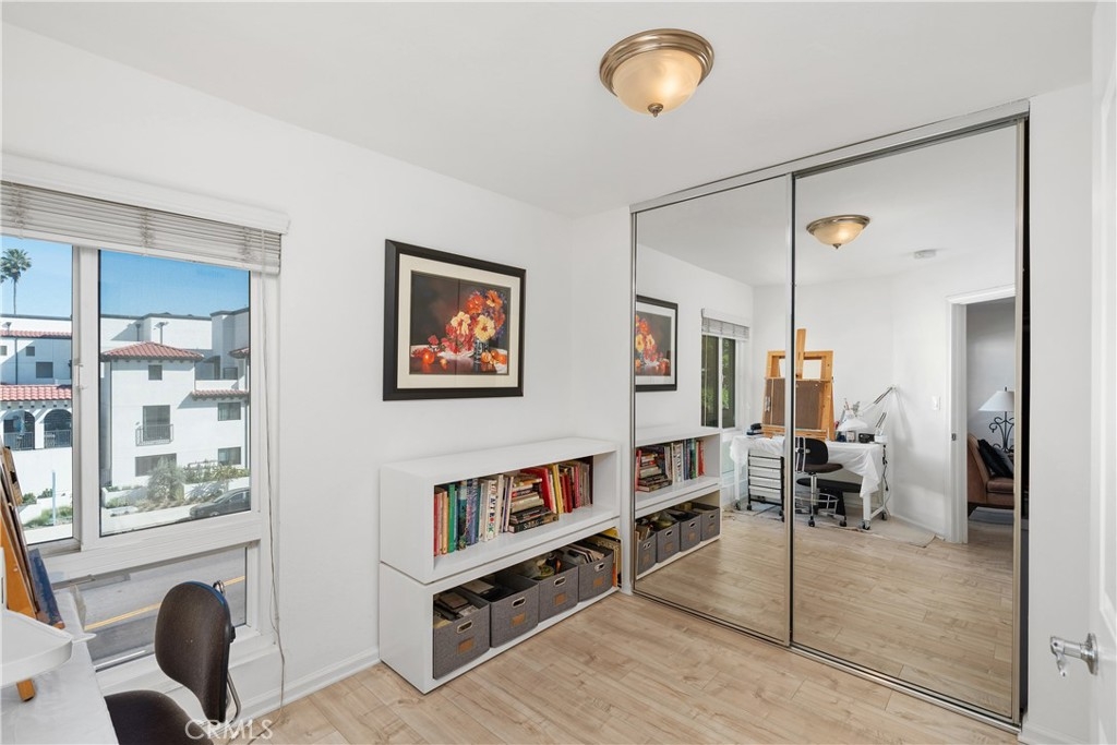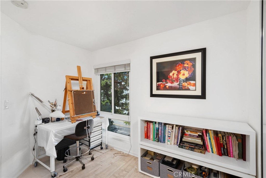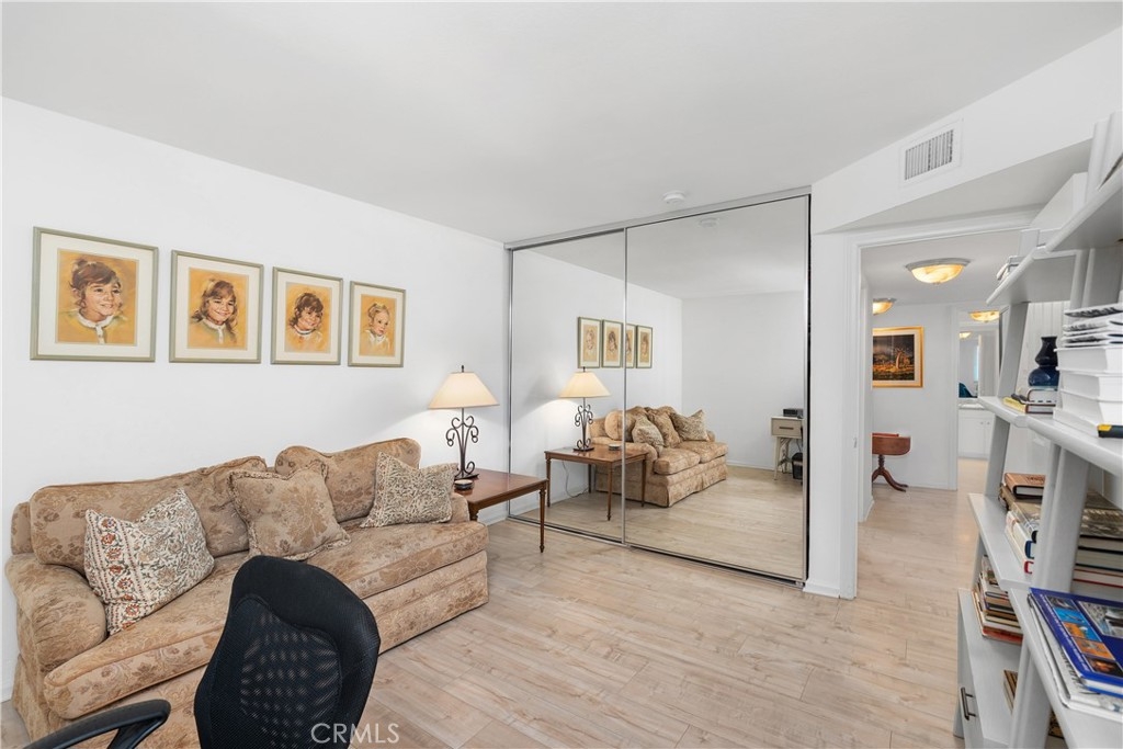 Charming condominium in Sherman Oaks, with over 1,200 square feet of living space. Title says two bedrooms, but there is a third with a closet that can also be used as an office, art room or bonus room. Top floor unit with laminate flooring, dual pane windows, laundry in unit, a secure building, and a sparkling pool for those warm Valley days. The primary is en-suite with a beautifully remodeled shower and extra closet space. Sit out on the balcony to enjoy a morning cup of joe or an afternoon ice cream. There are two parking spaces that are side-by-side. Minutes from Ventura Blvd and conveniently located to all Sherman Oaks has to offer-shops, restaurants and easy access to the major freeways. Be sure to visit this warm, inviting home.