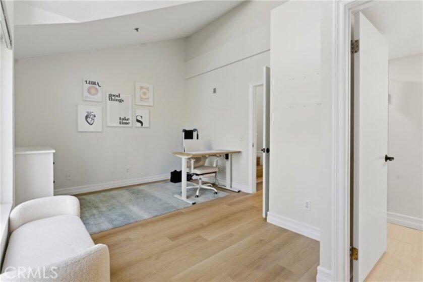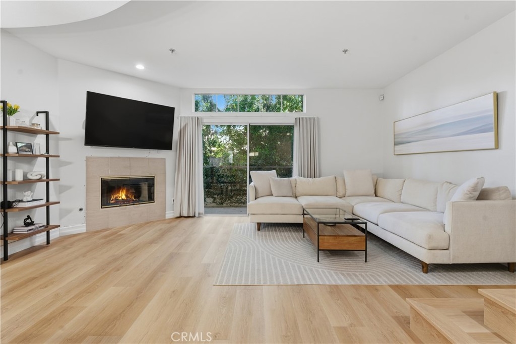 Welcome to Chelsea Court, an exclusive architectural enclave of just 16 residences tucked away in the heart of Sherman Oaks. This beautifully maintained complex features a private courtyard with vibrant landscaping, tranquil water fountains, and charming stone-paved walkways, creating a peaceful and inviting atmosphere. This fully remodeled luxury townhome offers 1,296 square feet of thoughtfully designed living space and showcases a rare private rooftop deck. Inside, the upgraded 2-bedroom, 3-bath residence features a bright and spacious open living area with soaring ceilings, new wood flooring throughout, recessed lighting, and a cozy gas fireplace. Large windows frame lush palm views, filling the space with natural light. The remodeled kitchen is both stylish and functional, complete with granite countertops and stainless steel appliances. Upstairs, the stunning primary suite boasts vaulted ceilings, a private balcony, custom shutters, dual closets, and a beautifully remodeled en-suite bathroom featuring a double vanity and an oversized walk-in shower. The secondary bedroom is equally impressive, offering its own remodeled en-suite bath, high ceilings, and a generous closet. A conveniently located stackable washer and dryer sit just outside the bedrooms for easy access. Additional highlights include two gated subterranean parking spaces with direct individual access into the unit, one of which is fully equipped for an electric vehicle charger. This home is also one of the few units in the community with a private, oversized storage room, perfect for extra belongings. Ideally located with quick access to the 101 Freeway, this highly desirable home is just blocks from Whole Foods, along with popular restaurants, shops, and neighborhood favorites—offering the perfect blend of comfort, style, and convenience.