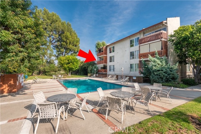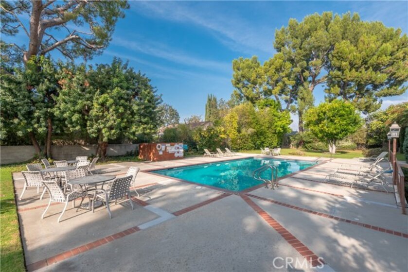 Welcome to this beautifully situated end unit in a prime location in Sherman Oaks. Interior features include an inviting open layout spanning nearly 1,500 square feet, highlighted by a spacious living and dining area that opens to a private balcony overlooking the serene, well-manicured grounds and pool. This rare vantage point is enjoyed by only a select few units in the community. The residence offers two generous bedrooms, including a true primary suite complete with its own bathroom and a massive walk-in closet. The secondary bedroom and bath are tastefully appointed, and the convenience of an in-unit laundry closet with a stackable washer and dryer enhances everyday living. Community amenities include a pool, spa, BBQ area, recreation room, and saunas. The HOA covers water, insurance, earthquake insurance, trash, and all common area maintenance. Gated parking provides two rare side-by-side spaces plus storage. Located near the highly desired Kester Elementary, major freeways, and the premier dining and shopping of Ventura Boulevard, this is truly a special offering.