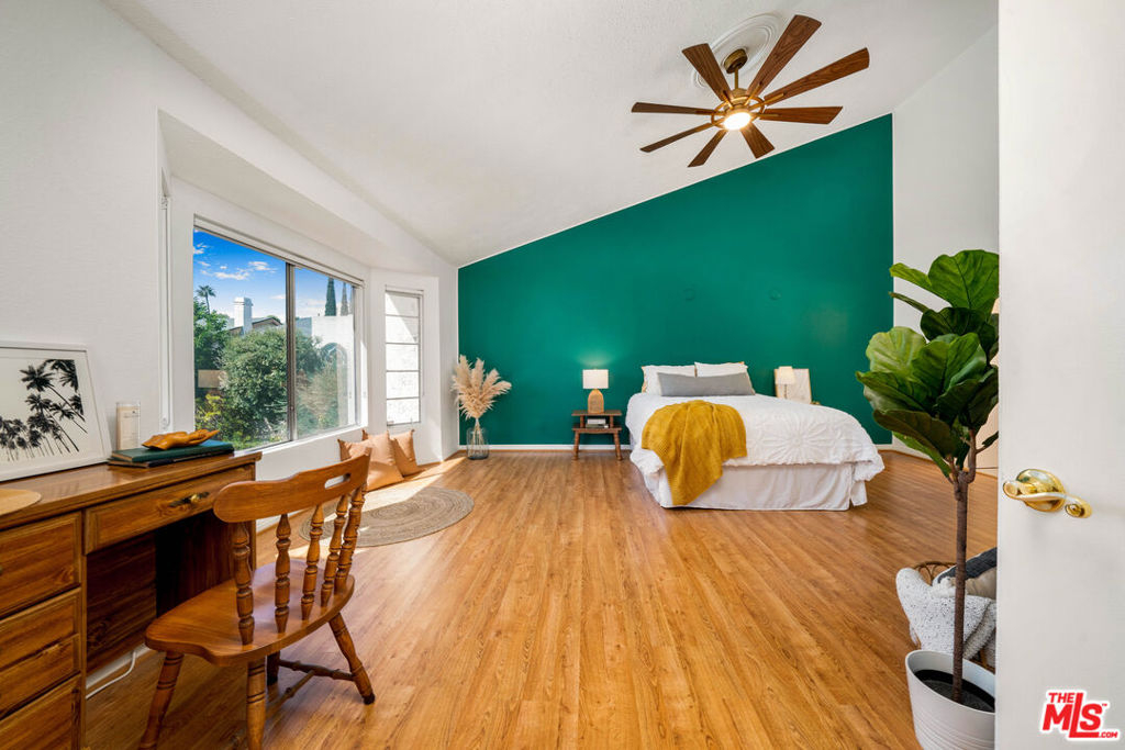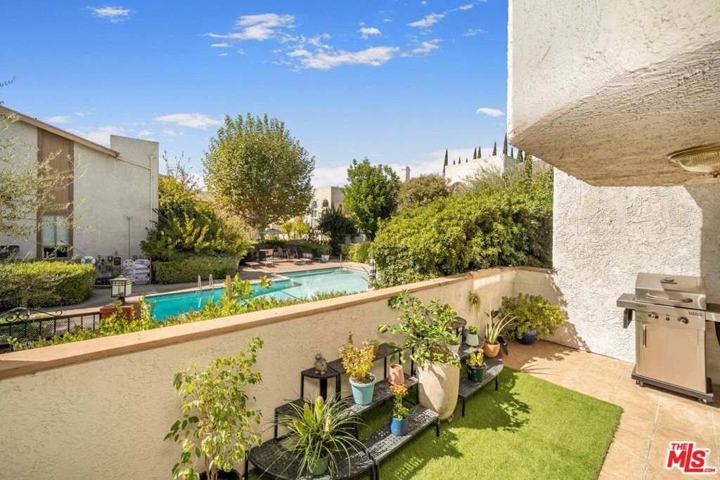 Removed from the hustle and bustle of the city, this delightful three-bedroom, three-bathroom townhouse-style condo exudes charm and comfort. Stunning hardwood floors and expansive windows fill the interior with natural light, creating a welcoming ambiance. The spacious living room, complete with a cozy electric fireplace, seamlessly connects to the dining area and kitchen featuring granite countertops and ample cabinet space. Relax outside on the patio where you'll experience quintessential California living with views overlooking the glistening pool area. The well-thought-out floorplan includes a main level bedroom and bathroom, with the primary suite and a third bedroom and bathroom located on the top level. The large primary bedroom presents a true suite experience, featuring vaulted ceilings, a walk-in closet, and private bathroom with dual sinks and a large bath/shower combo. This exceptional unit includes an attached two-car garage with plenty of storage space and a washer and dryer. Additionally, there is a separate private storage room within the unit. The meticulously maintained complex offers an array of amenities, including a pool, spa, recreation room, and beautifully landscaped grounds. Conveniently situated near the Shops at Sportsman's Lodge, NoHo West, and easy freeway access. This home provides the perfect balance of tranquility and convenience.