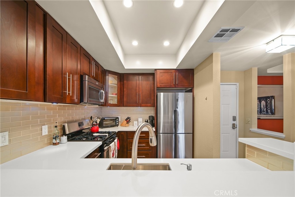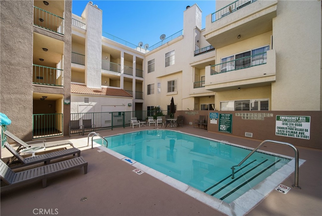 SHERMAN OAKS - A bright & beautiful remodeled single-level residence awaits you at Chandler Park Village! This private end unit is not facing Chandler & it is in absolute move-in condition w/ gorgeous wood-style flooring throughout, designer colors & an open floorplan infused w/ natural light... IDEAL for entertaining & everyday comfortable living <> The all new gourmet kitchen is gorgeous, showcasing wood cabinetry, quartz countertops, custom backsplash & stainless steel appliances <> The master bedroom suite is "king-sized bed" spacious, featuring 2 large walk-in closets & a roomy bathroom w/ a big bathtub <> A picturesque patio overlooks verdant tree-lined Sylmar Ave & the pretty townhomes across the way (Sylmar Ave is NOT a busy thoroughfare here) <> Other highlights include central air & heat, in-unit laundry, wet bar & a decorative fireplace. The complex features 2-car assigned parking near one of two elevators, guest parking, controlled access & several pool/spa areas to enjoy amongst the 3 buildings that make up this desirable 1989 complex <> The location is terrific... it's just minutes to Ventura Blvd's fine dining & shopping, good schools, & the incomparable Sherman Oaks Park <> Pre-escrow file is open; the prelim, disclosures, NHD report & HOA docs are all in hand... This awesome condo is a sure winner, so call your Realtor & come see it today... TELL A FRIEND...!