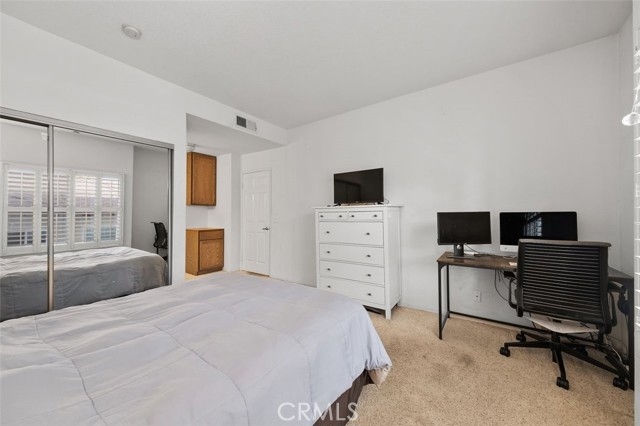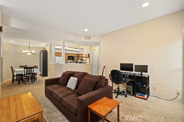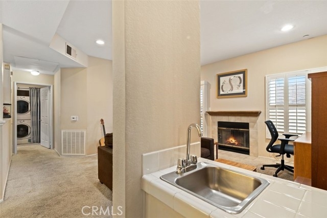 Welcome to this privately situated single-level corner-unit in the beautiful Chandler Park community. As you enter the front door, you are greeted by the open floor plan and high ceilings. The large kitchen offers ample countertop and cabinet space for storage. The kitchen area opens up to the cozy dining area. Spacious living room features a bright open layout, a fireplace, wet bar, and a private balcony. The primary bedroom features a walk-in closet, a secondary closet space, and an en-suite bathroom with a vanity. Through the hallway is the secondary bedroom, which offers large closet space and high ceilings. The secondary bathroom includes a generously sized stall shower and high ceilings. Other features include washer and dryer hook-ups in the unit and two private parking spaces in the garage. Community amenities include a sparkling pool and spa, bbq area, and several patio areas. Close proximity to grocery store and dining!