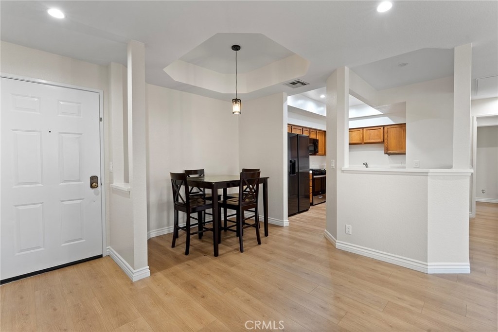 Step into the charm of this single-level corner-unit nestled in the serene Chandler Park Village community in Sherman Oaks. As you step through the front door, you'll be welcomed by an inviting open floor plan adorned with high ceilings. The spacious kitchen boasts plenty of countertop and cabinet space, seamlessly connecting to a delightful dining area. The living room is a bright and comfortable space, featuring a cozy fireplace, a convenient wet bar, and access to your private balcony. The primary bedroom is a retreat in itself, offering a walk-in closet, an additional storage space, and a luxurious en-suite bathroom with a stylish vanity. A well-laid hallway leads to the secondary bedroom, located on the other side of the unit, characterized by ample closet space and lofty ceilings and an en suite bathroom. Recent upgrades include new flooring, fresh paint, new electrical panel, updated plumbing, new stainless steel appliances, recessed lights, updated interior doors, and more. Additional highlights include in-unit washer and dryer hook-ups for convenience and two private parking spaces in the garage. This community offers enticing amenities such as a lovely pool and spa, a gym, a wonderful recreation room, a BBQ area, and several charming patio spaces. Enjoy the convenience of being in close proximity to a grocery store and various dining options. Don't miss the chance to make this updated and refreshed residence your new home!