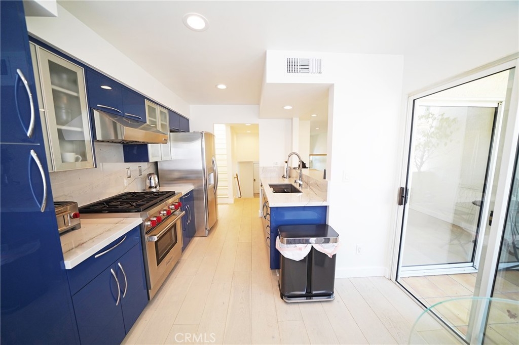 Welcome to 5455 Sylmar Ave, Unit #1502! This stunning Townhome has been completely remodeled and offers two spacious bedrooms and three luxurious bathrooms. As you enter the unit, you are greeted by an open, airy floor plan filled with abundant natural light and soaring ceilings. The living area is perfect for relaxing and entertaining, featuring a cozy fireplace and ample space for furniture arrangements. The kitchen boasts modern upgrades, including stainless steel appliances, sleek quartzite countertops, a never used Wolf stove and hood, and ample storage space. It is a cook's dream come true, providing the perfect backdrop for preparing delicious meals. Off the kitchen is a quaint patio, the ideal spot for morning coffee or after-work cocktails; there is even another patio in the front that provides shade from the mature greenery. Both bedrooms are generously sized and offer plenty of closet space. The Primary bedroom is a tranquil retreat with an ensuite bathroom featuring a contemporary vanity and a stylish shower. Residents of this complex have access to fantastic amenities, including refreshing pools and relaxing spas, and a fitness center. Additionally, the building provides secure entry and a dedicated two-car garage. Located in a prime location is just a short distance from shopping, dining, and entertainment options. With easy access to major freeways, commuting to different parts of the city is a breeze. Don't miss your chance to own this beautifully remodeled 2-bedroom, 3-bath Townhome! Schedule a viewing today and experience this property's comfortable and upscale lifestyle.