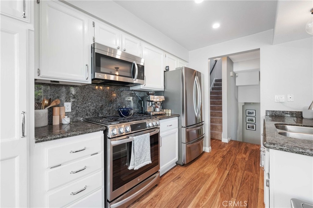 Gorgeous "end unit" Tri level 3 bedrooms, 2 1/2 bath townhouse in Sherman Oaks! Chef's gourmet's kitchen, with LG top of the line appliances, granite counters, newly re-finished kitchen cabinets, a breakfast bar, and loads of pantry space. The spacious large dining room, that has space for Thanksgiving dinners, a quaint balcony with entry points from both kitchen and dining room. Downstairs living room with fireplace and cathedral ceilings, a newly remodeled downstairs powder room, and an outside patio with lots of seating and BBQ. Upstairs, exhibits a "cavernous" primary bedroom that has cathedral ceilings and a beautifully remodeled primary bath. There are 2 other large bedrooms that share a "jack and jill" bath. In the huge 2- car garage, there is washer/dryer hookups, and a high voltage EV charger. The complex has 2 pools and spa areas (one is steps away from this unit), and also this complex has a gym with the latest equipment, and a clubhouse. There is lots of visitor parking and this unit comes with 2 parking passes. This unit is close to all, walk to Ralph's market, and many restaurants, and just minutes away from Sherman Oaks Park, Sherman oaks Galleria, and Ventura Blvd. Hurry, this one won't last!
