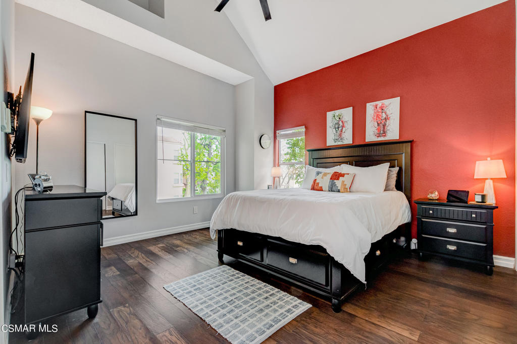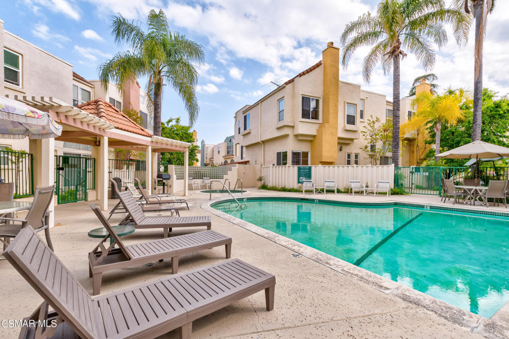 Beautiful tri-level condo in Sherman Oaks! This wonderfully maintained 3 bed, 2.5 bath end unit is one you don't want to miss! As soon you enter, you will feel right at home. A Spacious and comfortable living room is the perfect place to entertain with friends and family. With tons of natural light, high ceilings and a beautiful stacked stone fireplace, this room is perfect for so many options. The mid level up boasts the kitchen with updated countertops and appliances, along with the dining room and adjacent outdoor terrace. The top level has an abundance of natural light from the hallway skylight, beautiful vaulted ceilings in the main bedroom and two en-suite bathrooms. This privately gated community offers a gym, two pools, and security car patrols. This wonderful and private unit in very conveniently located close to shopping and restaurants. Don't miss out!